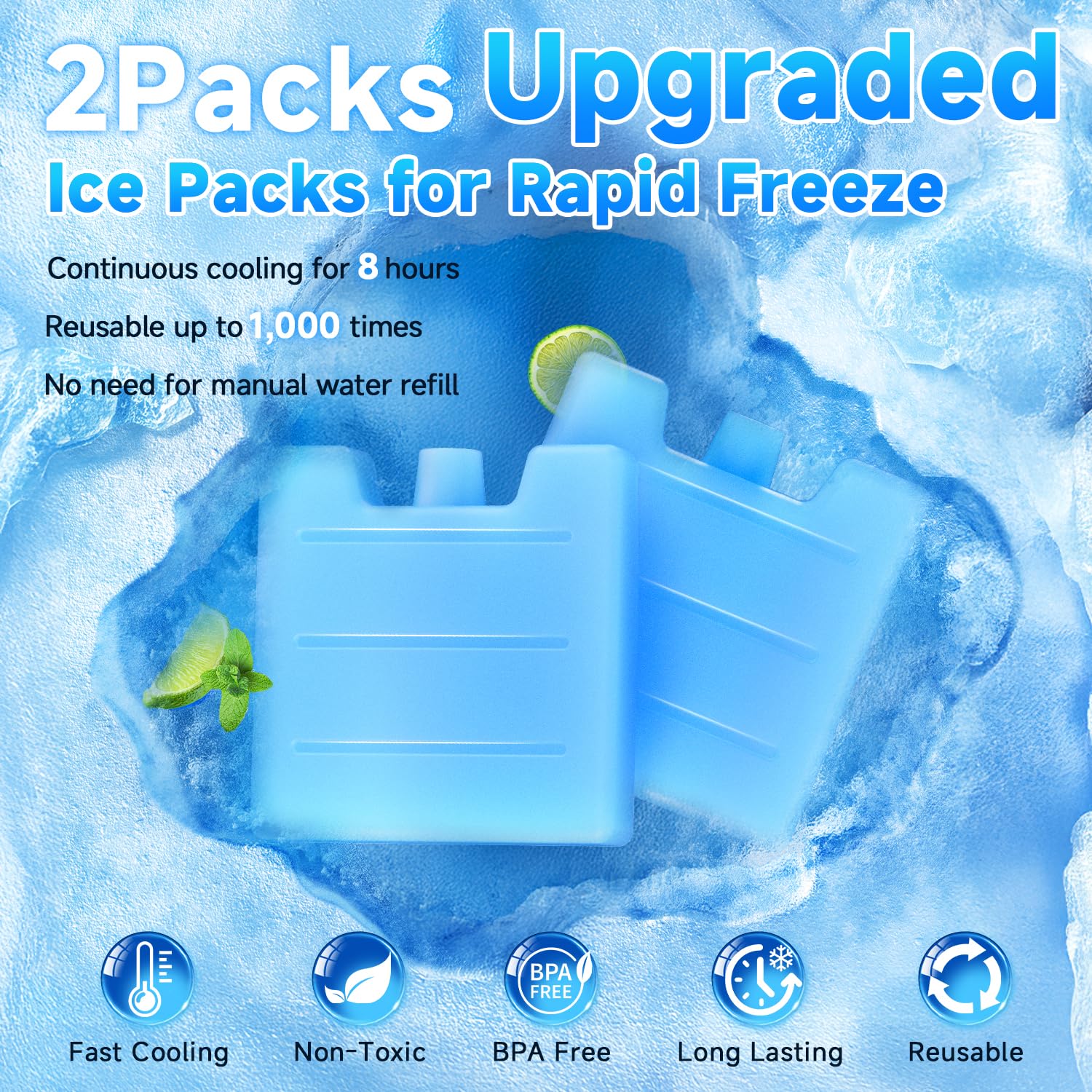 - ❄️【2 Premium Reusable lce Packs】This small portable air conditioners come with 2 upgraded, replaceable ice packs. Made with BPA-free outer shells and filled with polymer gel, these packs are sealed to prevent leaks and can be reused over 1000 times—no need for manual water filling. The compact design saves space in your fridge, freezes the ice pack once, and relishes up to 8 hours of continuous coolness.