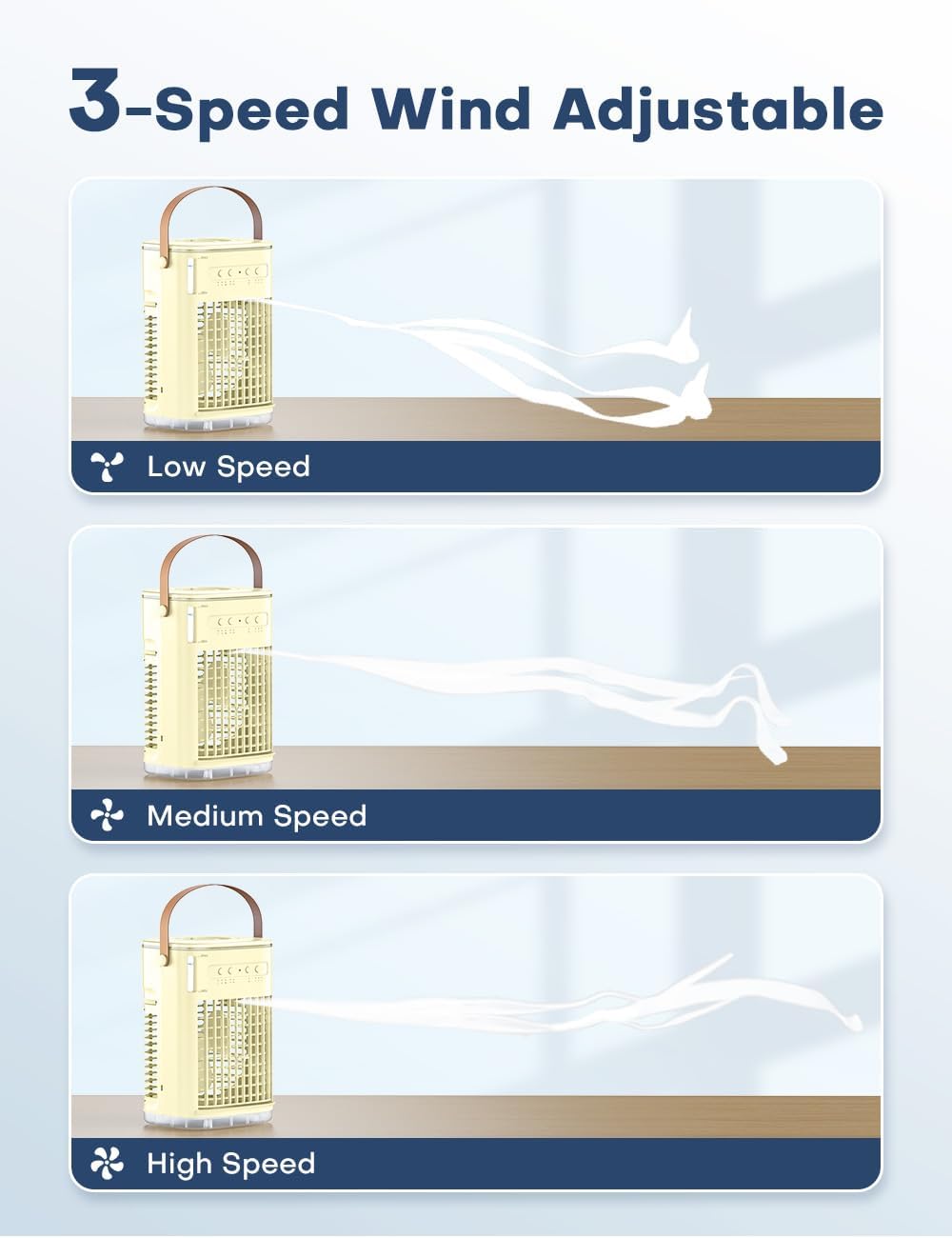 - โใ๐๐ฎ๐ฅ๐ญ๐ข๐๐ฎ๐ง๐๐ญ๐ข๐จ๐ง๐๐ฅ ๐๐ข๐ซ ๐๐จ๐จ๐ฅ๐๐ซใThis small air conditioner has multi functions in-1 design. Fan mode: use without water for a refreshing breeze. Cooler mode: Add water and ice boxes for a cooling effect. Humidifier mode: Activate the humidifier button for cold air and relief from dryness. Moreover, the portable air cooler has high-quality, compact, and durable ice boxes that are designed for endless reuse without leakage. Adding them to the water tank will significantly improve the cooling effect!
