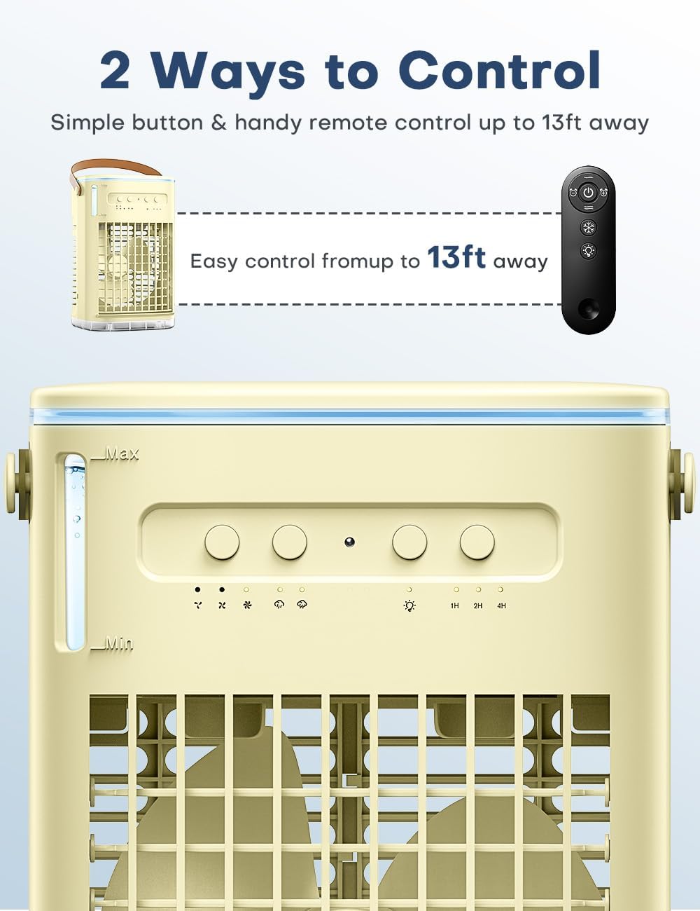 FANCOLE Mini Air Conditioner, 3 IN 1 Portable Desk Fan w/5400mAh Battery, 3 Speeds, Remote Control, Night Light, USB Powered Evaporative Air Cooler, Personal Air Conditioner for Bedroom Yellow